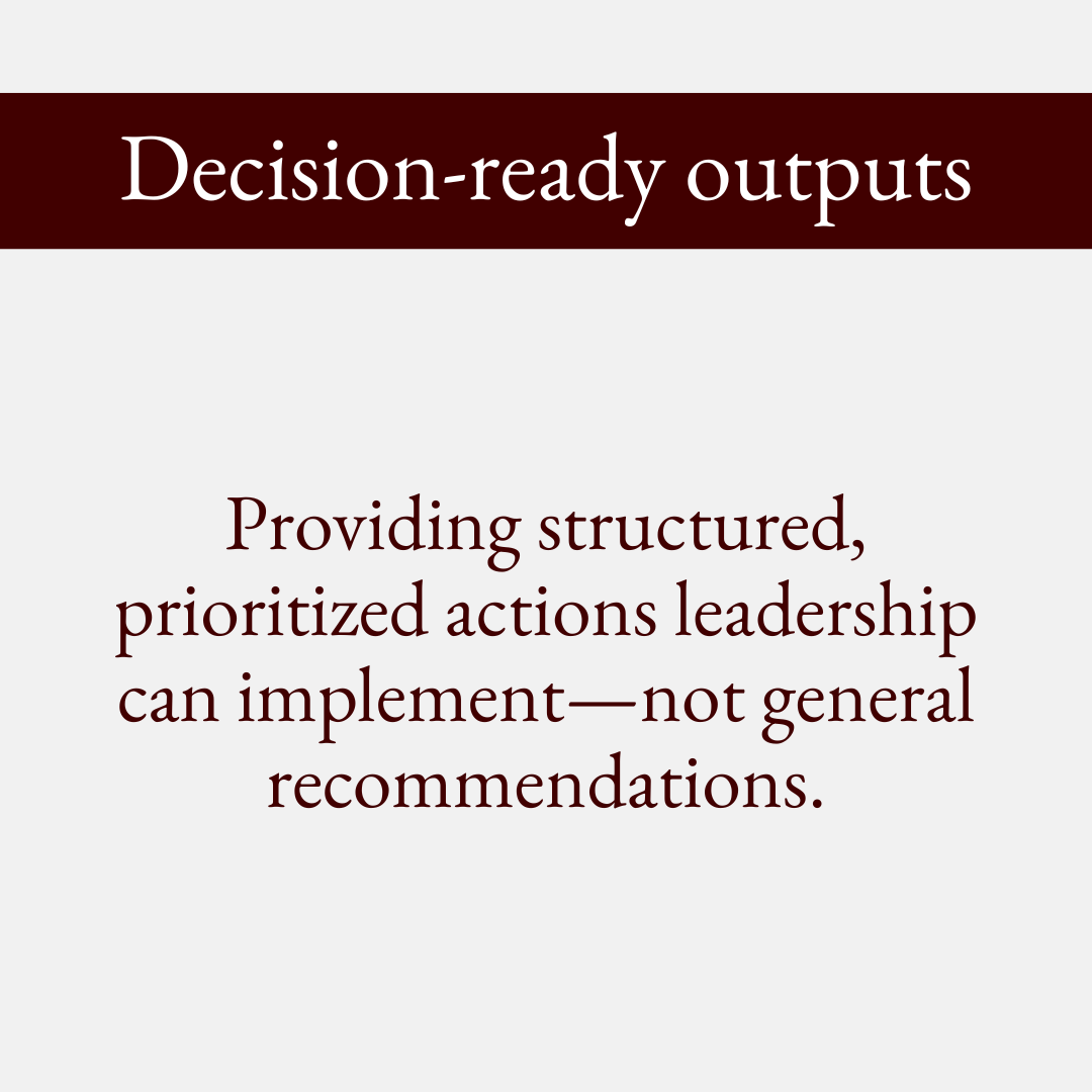 Leadership debriefs that translate findings into sequenced decisions